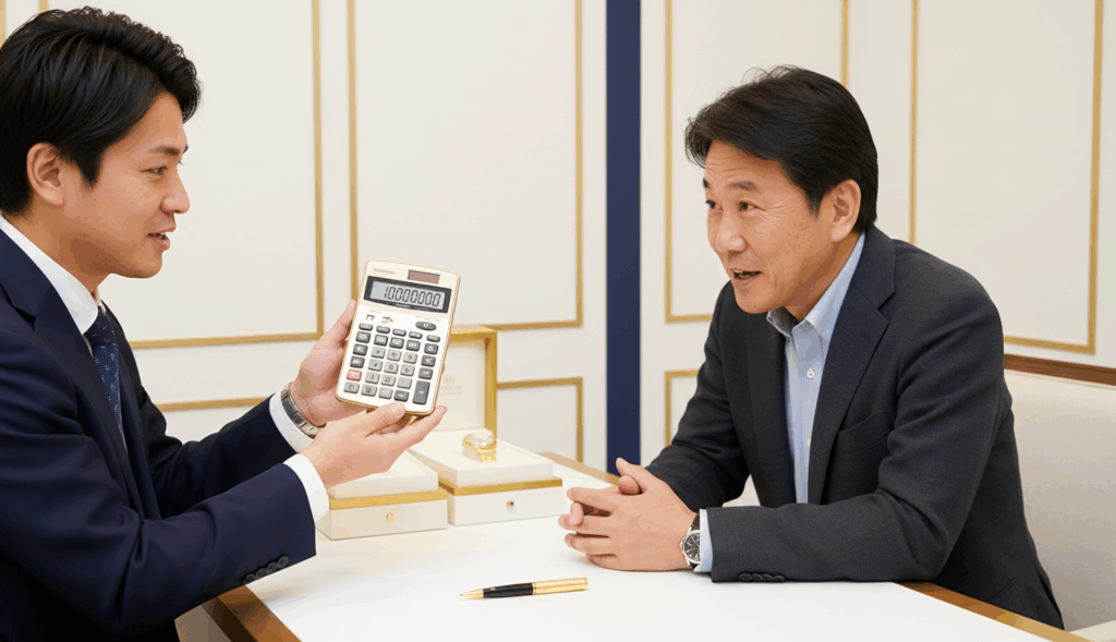 - 経験豊富なスタッフがその場で商品を拝見し、価値を丁寧に査定します。査定はすべて無料ですので、ご納得いただけるまでご相談ください。